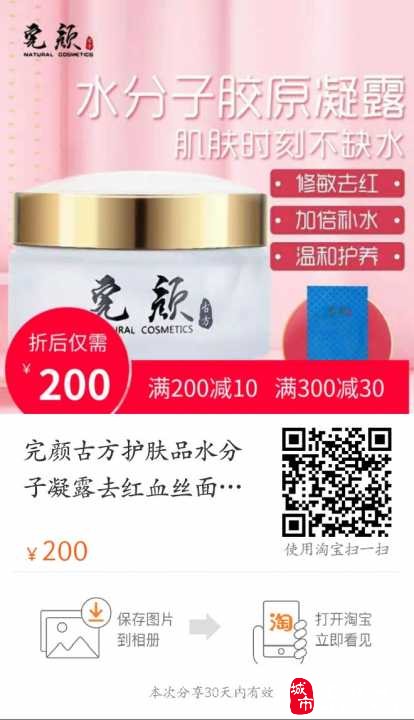 完颜古方护肤品水分子凝露去红血丝面霜淡纹去痘印孕妇可用修复 宝中宝,明星产品:完颜古方――水分子,主要功效:深层补水,补充皮肤胶原蛋白,修复敏感红血丝肌肤,增加皮肤蛋白质合成,促进细胞再生,抗氧化,促进伤口愈合,针对烫红,晒伤有辅助疗效。适合任何肤质